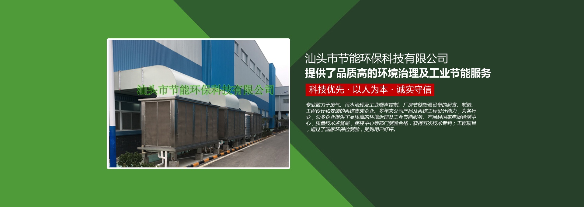 汕頭市節(jié)能環(huán)保科技有限公司創(chuàng)建于1998年,是一家專業(yè)致力于廢氣、污水、粉塵、噪聲治理,廠房節(jié)能降溫設(shè)備的研發(fā)、制造、工程設(shè)計(jì)和安裝的系統(tǒng)集成企業(yè)。多年來公司產(chǎn)品及系統(tǒng)工程設(shè)計(jì)能力,為各行業(yè),眾多企業(yè)提供了品質(zhì)高的環(huán)境治理及工業(yè)節(jié)能服務(wù)。產(chǎn)品經(jīng)國家電器檢測(cè)中心,質(zhì)量技術(shù)監(jiān)督局,疾控中心等部門測(cè)驗(yàn)合格,獲得五次技術(shù)專利;工程項(xiàng)目通過了國家環(huán)保檢驗(yàn)檢測(cè),受到用戶好評(píng)。